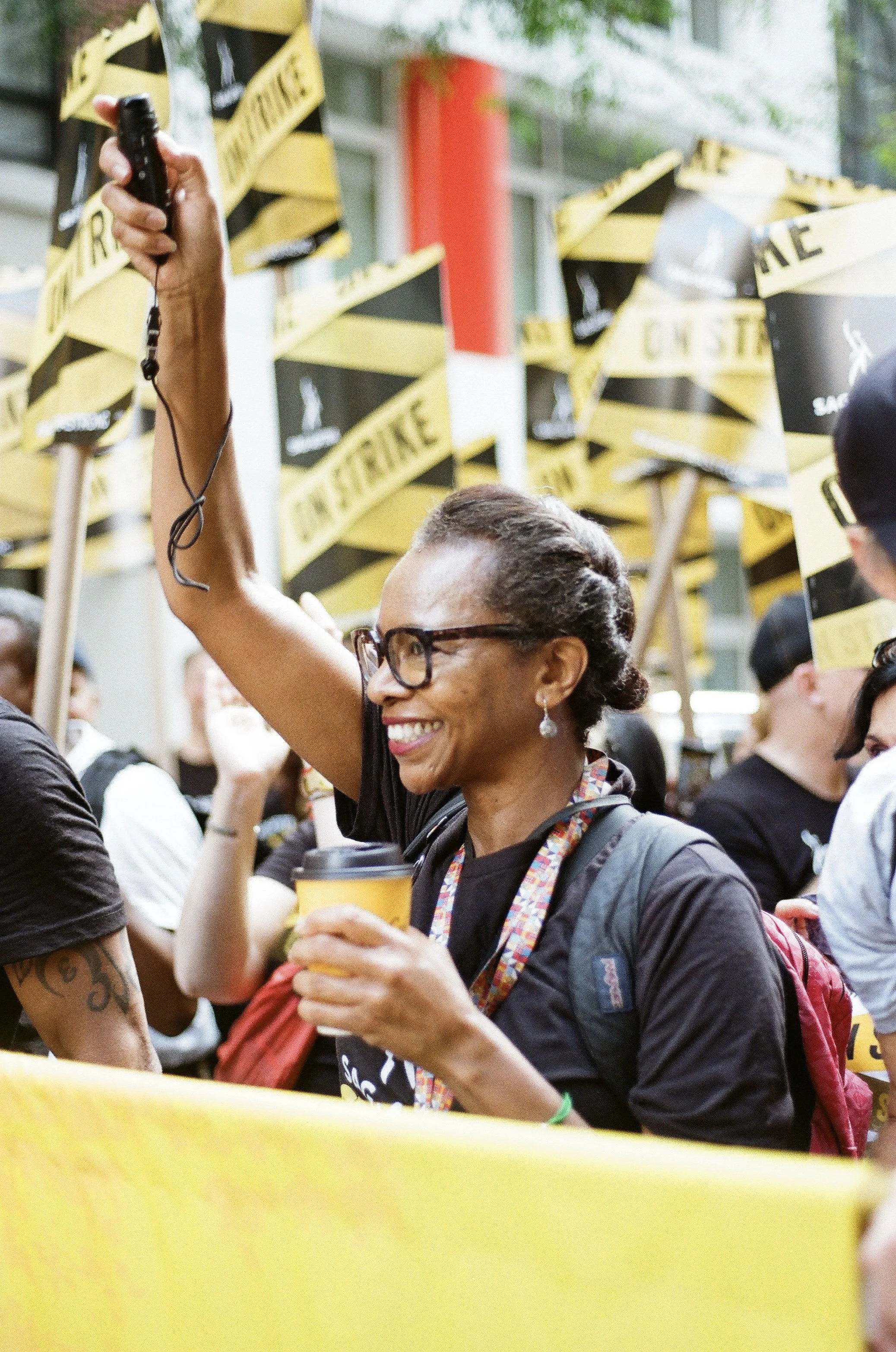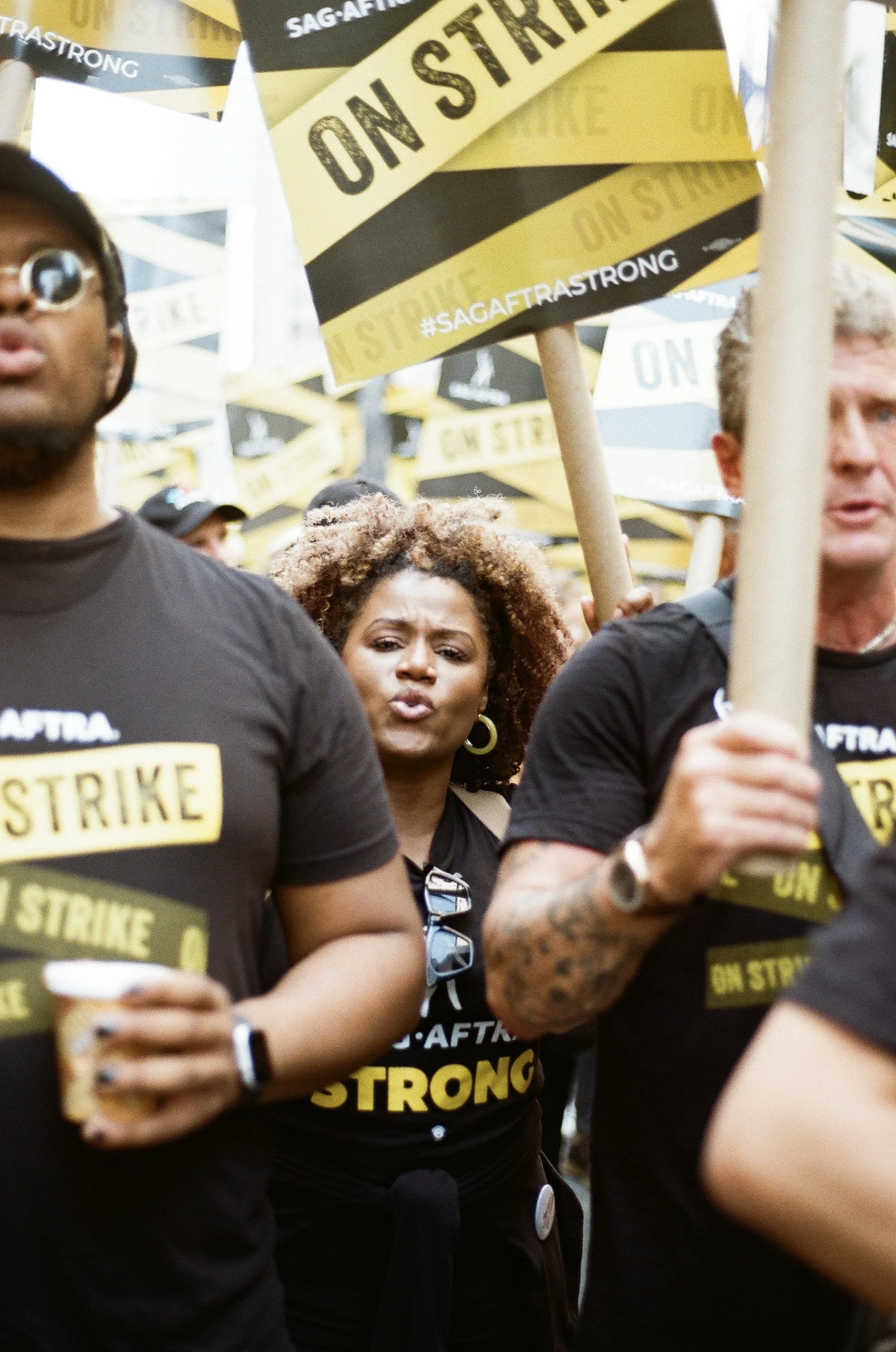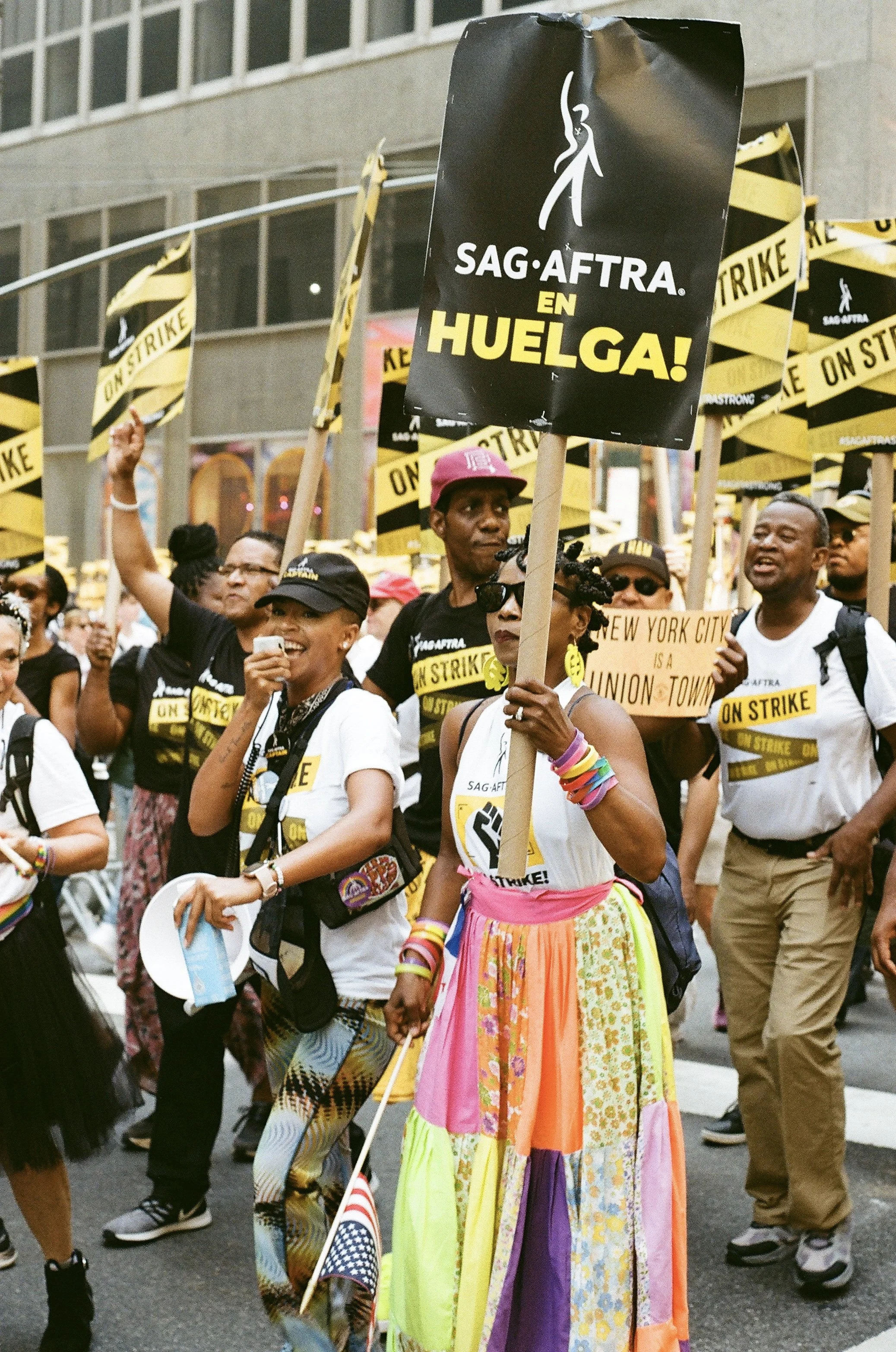 sag-aftra & writers guild of america strikers at the 2023 labor day parade